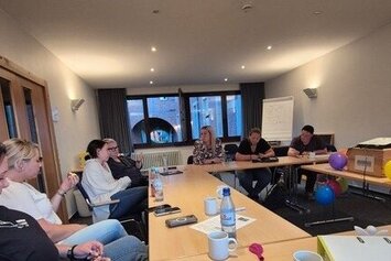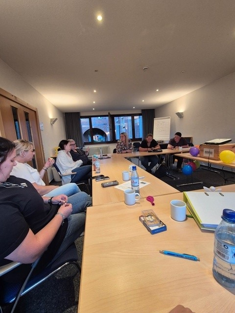 Anfang des Jahres 2025 hatten wir zu den Themen "Gruppenspezifische Schutzkonzepte", "Traumapädagogische Standards in der KEW" und "Medienpädagogische Haltungen und Standards in der KEW" drei Arbeitsgruppen mit Gruppenleitungen, interessierten MitarbeiterInnen und dem Leitungsteam der KEW gebildet. Unsere Klausurtagung wollten wir nutzen, um uns unsere Ergebnisse gegenseitig zu präsentieren. Am Montag begann das Team der gruppenspezifischen Schutzkonzepte mit seiner Präsentation, während es am Dienstag um die traumapädagogischen Standards der KEW ging. Mittwoch beschäftigten wir uns dann noch mit Medienpädagogik in der KEW. Alle Gruppen waren intensiv vorbereitet und hatten sehr kreativ ihre Präsentationen vorbereitet, sodass auch „trockenere“ Themen Spaß machten. Es wurden Rückfragen gestellt, Impulse reflektiert und natürlich viel diskutiert. Erste Ergebnisse wurden schon in die Wohngruppen mitgenommen und können nun erprobt werden, wie zum Beispiel eine neue Struktur für unsere wöchentliche Teamvorlage, die in allen Teams gleich ist.