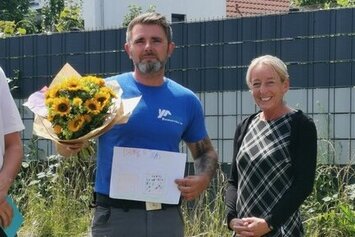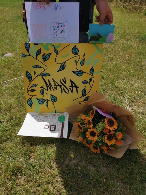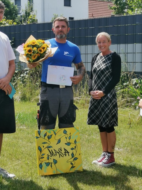 Als kleines Dankeschön bekamen die fleißigen Mitarbeiter selbstgemalte Bilder und Blumen.