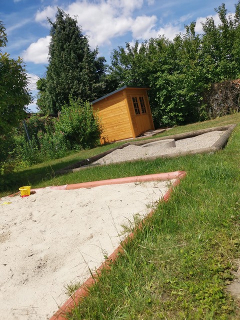 Gespendet und gebaut wurden ein neuer Sandkasten, eine gemütliche Feuerstelle und eine spannende Spielröhre - eine wunderbare Bereicherung für unseren Garten.